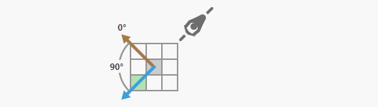 First, the horizontal direction must be established. Horizontal direction is measured in degrees from 0 to 360. The starting point is to the north of the processing cell, increasing in a clockwise direction.
